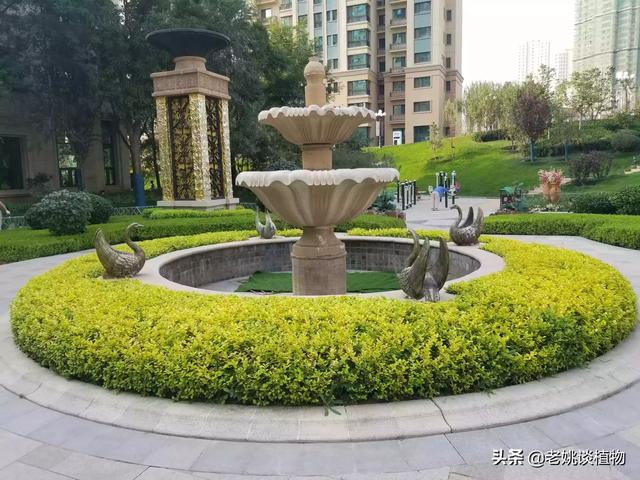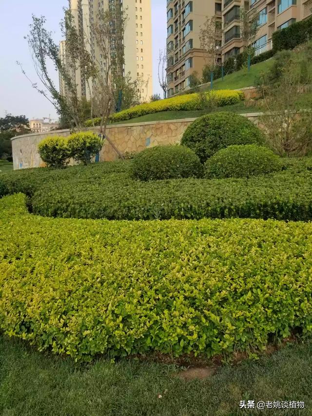 绿化带是城市绿地、道路隔离带、小区单位院子常用的绿化形式,金叶女贞群植成带状,色彩醒目,非常漂亮。