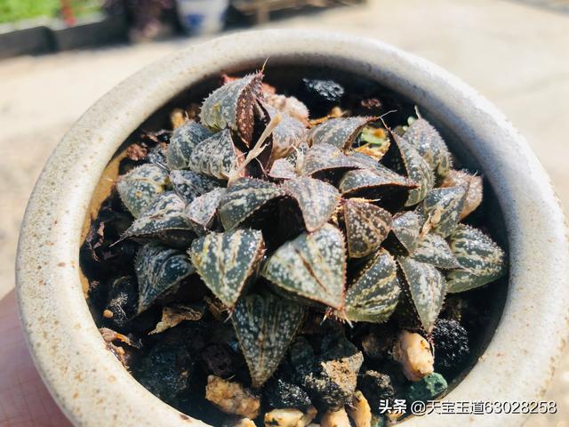 多肉十二卷养护非常简单,主要是配土比例颗粒土70%泥潭30%,散光养护每天保证两个小时光照就可以,秋季东季春季一周一次浇水,夏季20天左右一次浇水,这样养肉三年不用换盆换土。