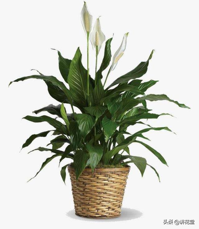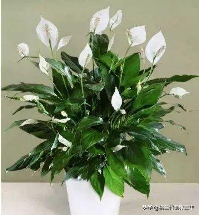 4.白鹤芋也叫白掌,它比较耐阴,喜欢温暖湿润的环境,怕强光暴晒。它的花茎高出叶丛直立,白色的佛焰苞微微卷起非常好看。它可以过滤室内废气,对做饭时的味道、油烟以及挥发物质有有效的净化做用。